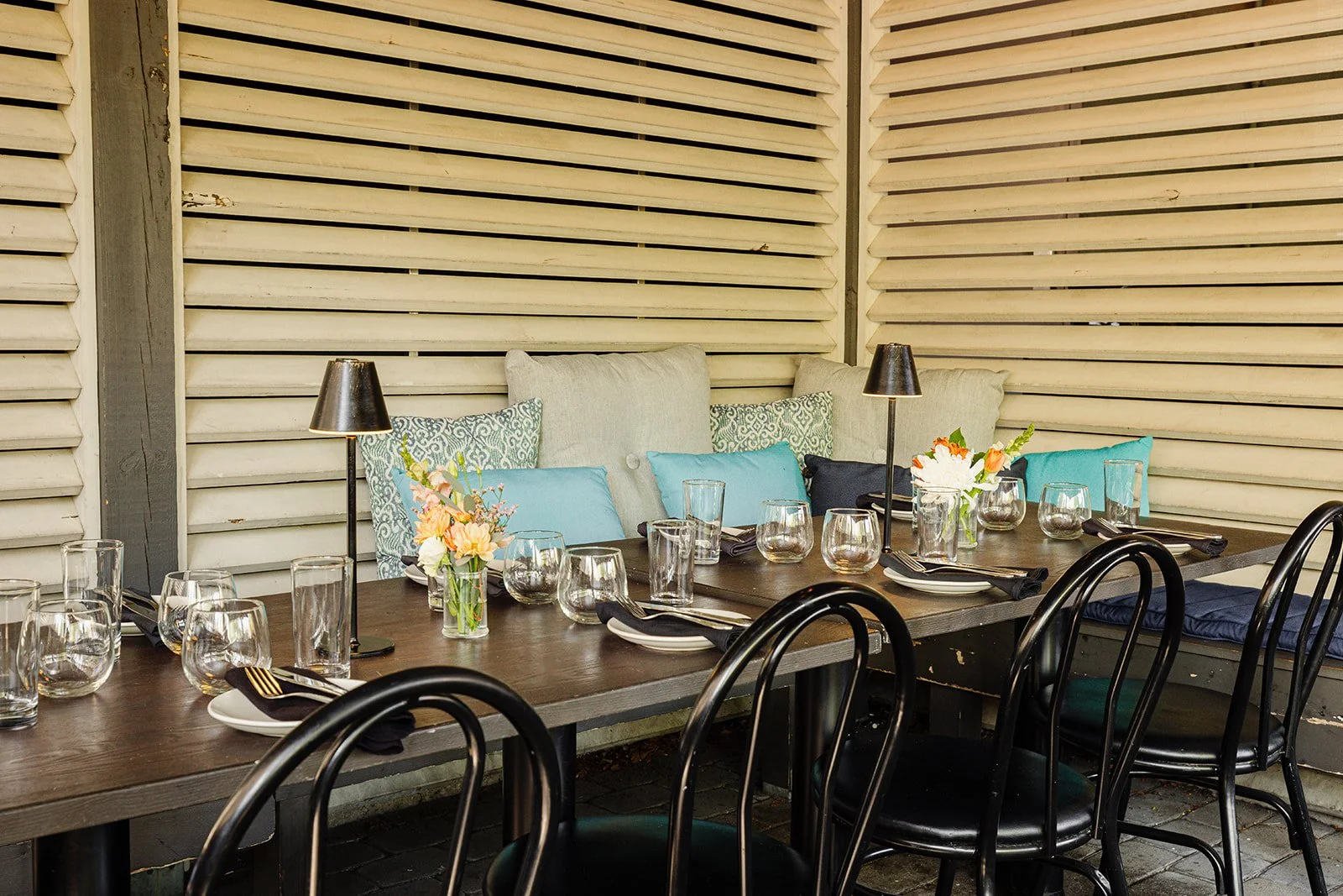 Our intimate Dining Room is the perfect private space for your small group gathering. With windows looking onto our patio dining area and Washington Park, this dimly lit room offers the perfect setting for your special occasion.